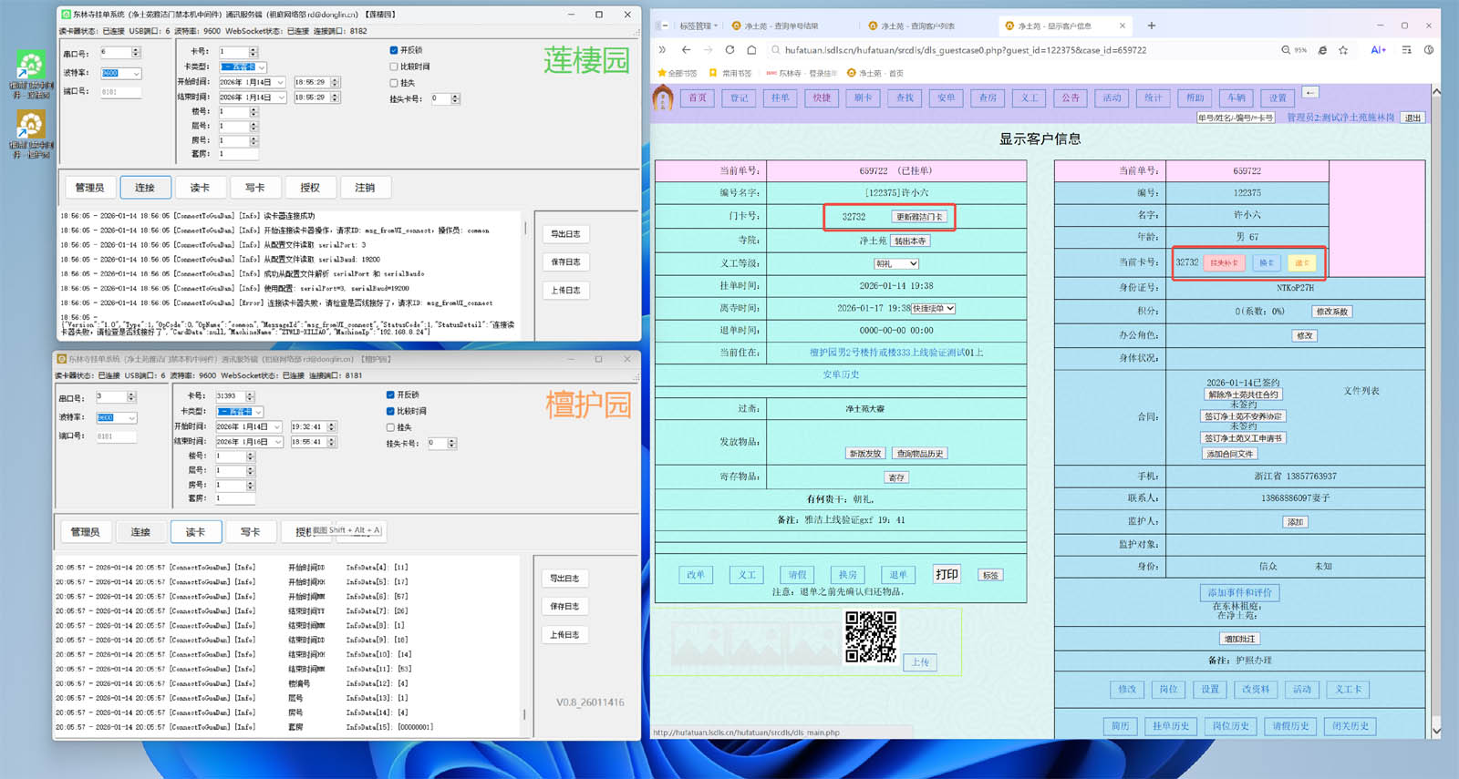 已完成净土苑雅洁门禁(七栋檀护园和两栋莲棲园)的替换,升级为自主开发的雅洁中间件软件进行通讯,原雅洁酒店管理系统的门禁核心功能已全面整合至挂单平台,无需再操作酒店管理系统,已初步具备一卡通的功能整合。